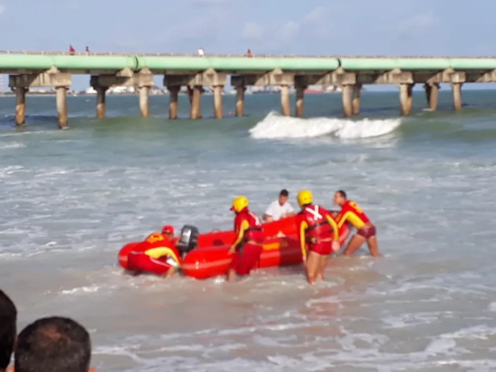 Foto de arquivo mostra bombeiros em trabalho de resgate na Praia da Avenida, em Maceió — Foto: Marcos Rolemberg/TV Gazeta