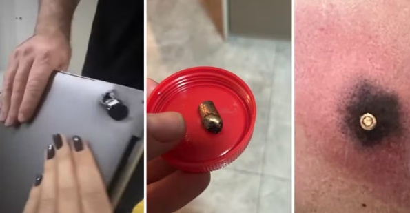 Na sequência, os criminosos desligaram o veículo e um deles atirou contra as costas do motociclista. Porém, o projétil perdeu força ao transfixar a mochila e o notebook, o que fez com que o homem não se ferisse gravemente, segundo informou a PM.