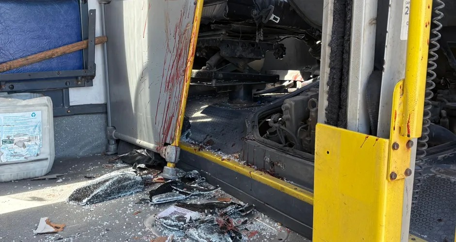 Marcas de sangue ficaram espalhadas pelo veículo. Silas Emanuel/TV Gazeta