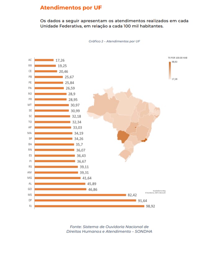 Segundo o levantamento, o Ligue 180 registrou em Alagoas um percentual de 45,89% de ligações para cada 100 mil habitantes. O estado aparece na quinta posição do ranking dos estados, atrás de Goiás (46,86%), Mato Grosso do Sul (82,42%), Distrito Federal (91,64%) e Rio de Janeiro (98,92%, na primeira colocação).