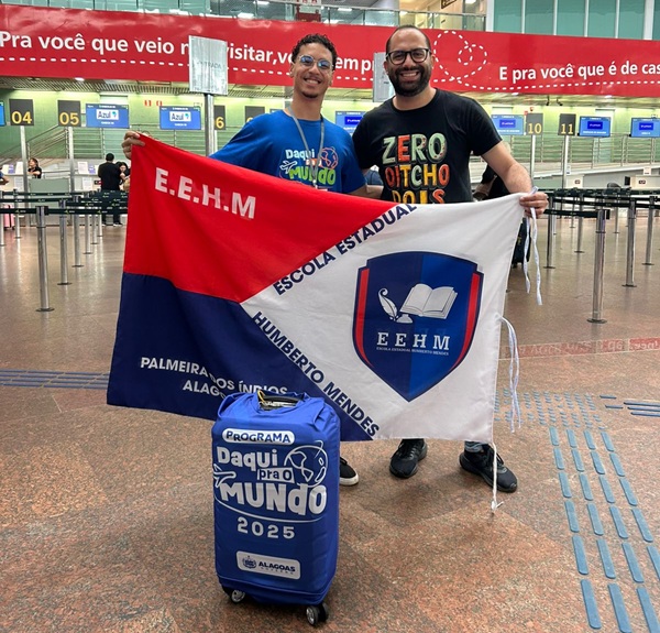 O estudante Mikael Júnio, da Escola Estadual Humberto Mendes, em Palmeira dos Índios, embarcou neste sábado (9) rumo à Inglaterra para participar do programa de intercâmbio internacional Daqui pro Mundo, promovido pelo Governo de Alagoas por meio da Secretaria de Estado da Educação (Seduc).