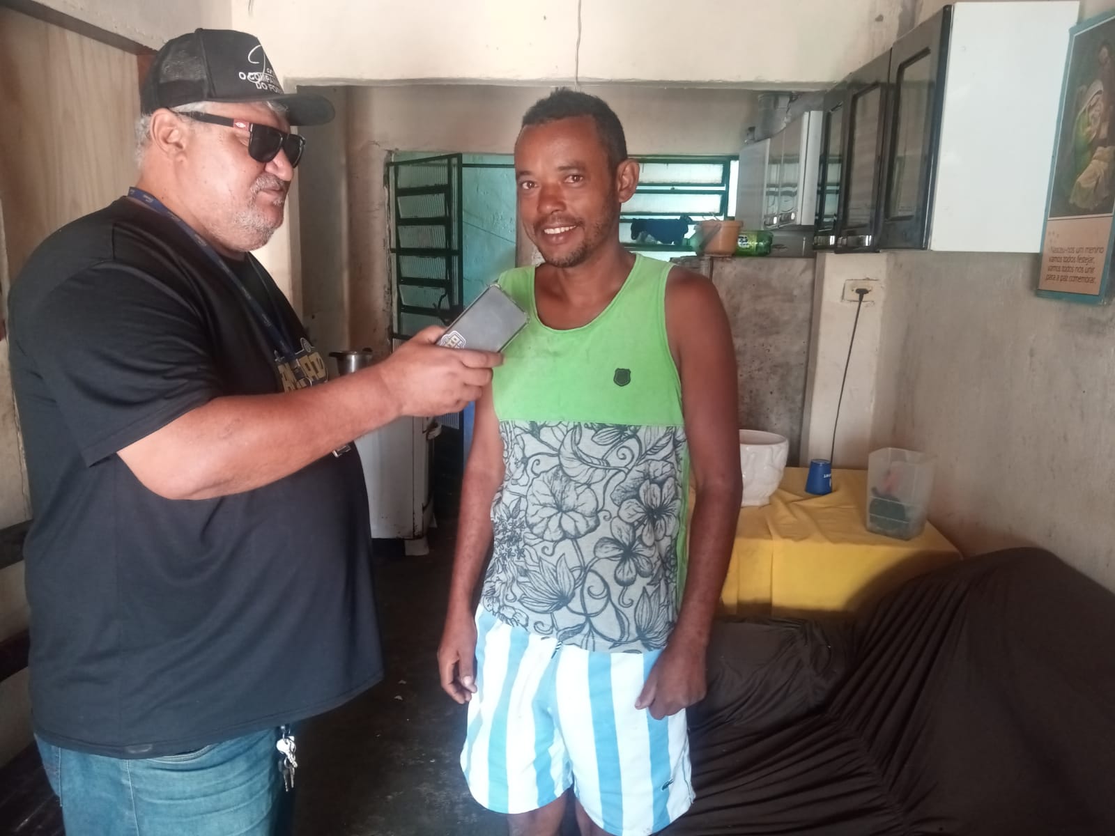 Repórter Niraldo Correia entrevistando o Sandro | Foto: Márcio Lima