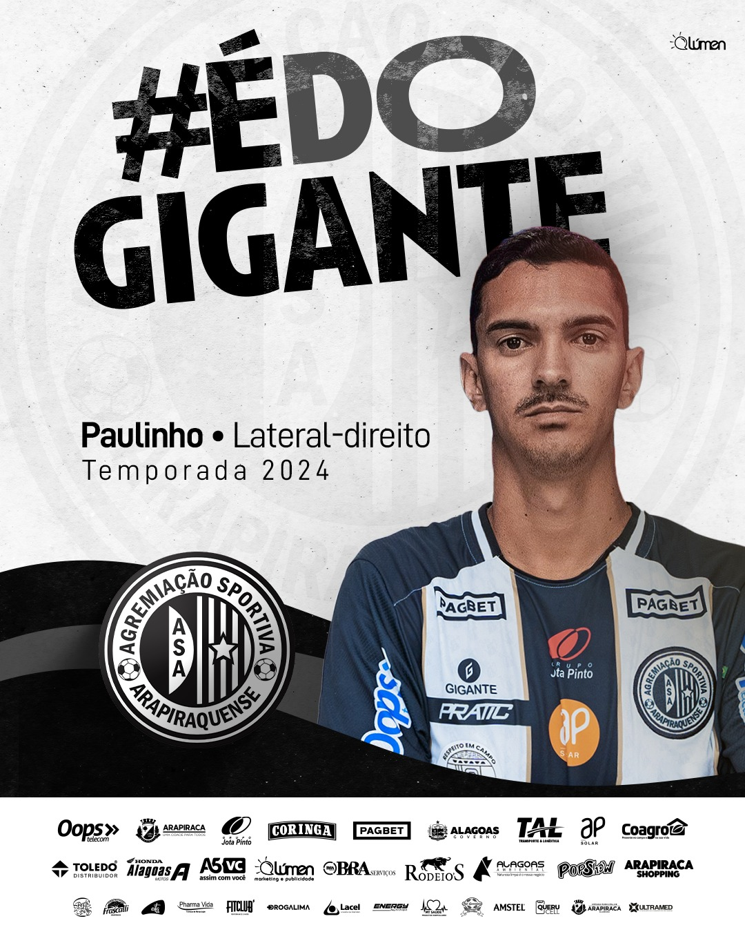 A vice-presidência de Futebol do ASA anunciou, nesta quarta-feira (4), a contratação do lateral-direito Paulo Ricardo Batista de Araújo, o Paulinho, 31 anos. Natural do Rio de Janeiro, Paulinho esteve toda temporada de 2023 atuando pelo Bahia de Feira de Santana.