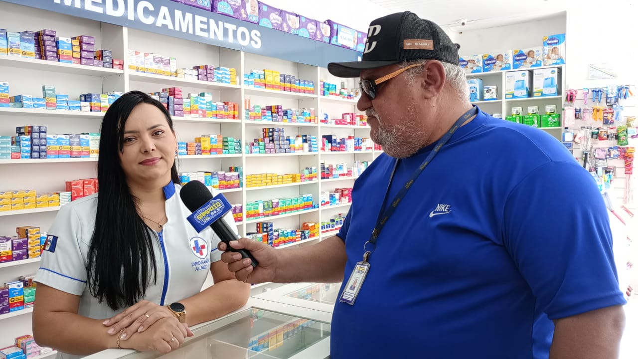 Repórter Niraldo Correia, da Rádio Sampaio 94.5 FM, conversou com exclusividade com a gerente da Drogarias Almeida - Foto: Gustavo Morais