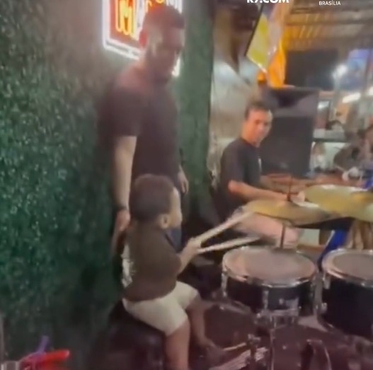 O pequeno Gael, de apenas 1 ano, protagonizou um momento inesquecível e cheio de encanto em um restaurante, durante a apresentação de uma banda ao vivo. Enquanto os músicos animavam o público, o bebê se aproximou do palco e começou a “tocar bateria” no ritmo da música, arrancando sorrisos e aplausos dos clientes.