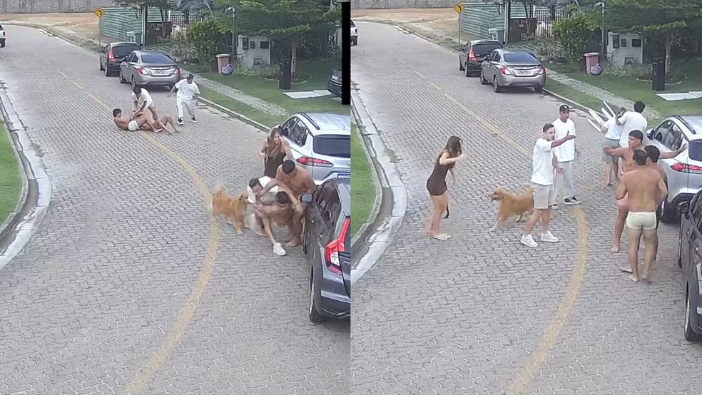 Uma briga generalizada envolvendo jogadores do Fortaleza Esporte Clube, vizinhos e até um cão de estimação foi registrada por câmeras de segurança em um condomínio de luxo no Eusébio, na Região Metropolitana de Fortaleza, no dia 1º de janeiro.