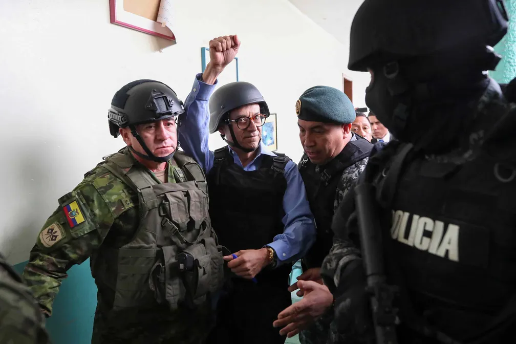 Zurita compareceu à seção eleitoral com forte esquema de segurança, usando um capacete e colete de proteção. A candidata presidencial Luisa Gonzalez também já registrou seu voto ainda pela manhã.