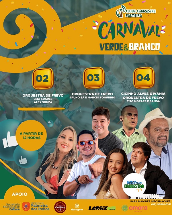 “Preparamos com muita alegria mais um ano de Carnaval para nossos associados e convidados. Todos estão convidados a brincar, se divertir e curtir essa festa conosco. Vamos torcer para que tudo ocorra bem, não apenas no Clube Campestre, mas em toda a nossa Palmeira dos Índios”, afirmou.