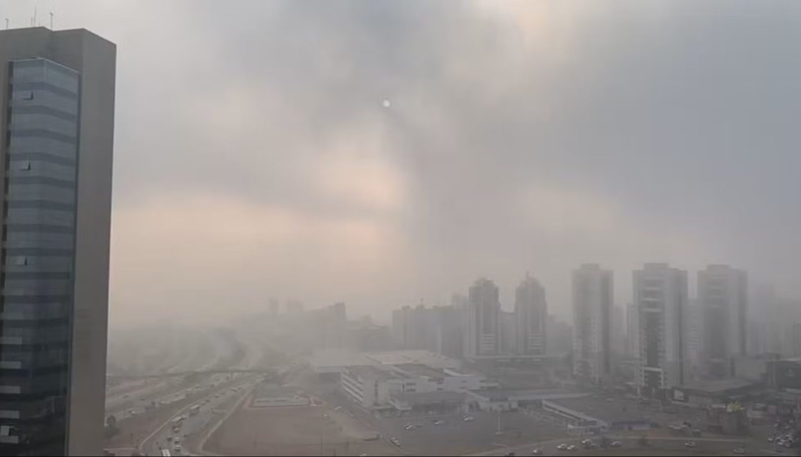 Brasília amanheceu coberta por fumaça pelo segundo dia seguido, nesta segunda-feira (26). Segundo o Corpo de Bombeiros, a situação é proveniente dos incêndios no interior de São Paulo.