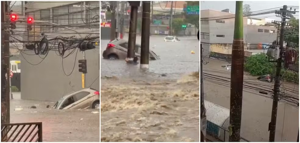 Na Grande São Paulo, o município de Guarulhos registrou pontos críticos de alagamento, especialmente na Avenida Monteiro Lobato, onde pessoas ficaram ilhadas. Imagens mostram uma mulher que estava em um carro sendo surpreendida pela enxurrada e se agarrando a um poste após o veículo ser arrastado. Segundo o Corpo de Bombeiros, ela foi resgatada sem ferimentos, assim como outras três pessoas socorridas.