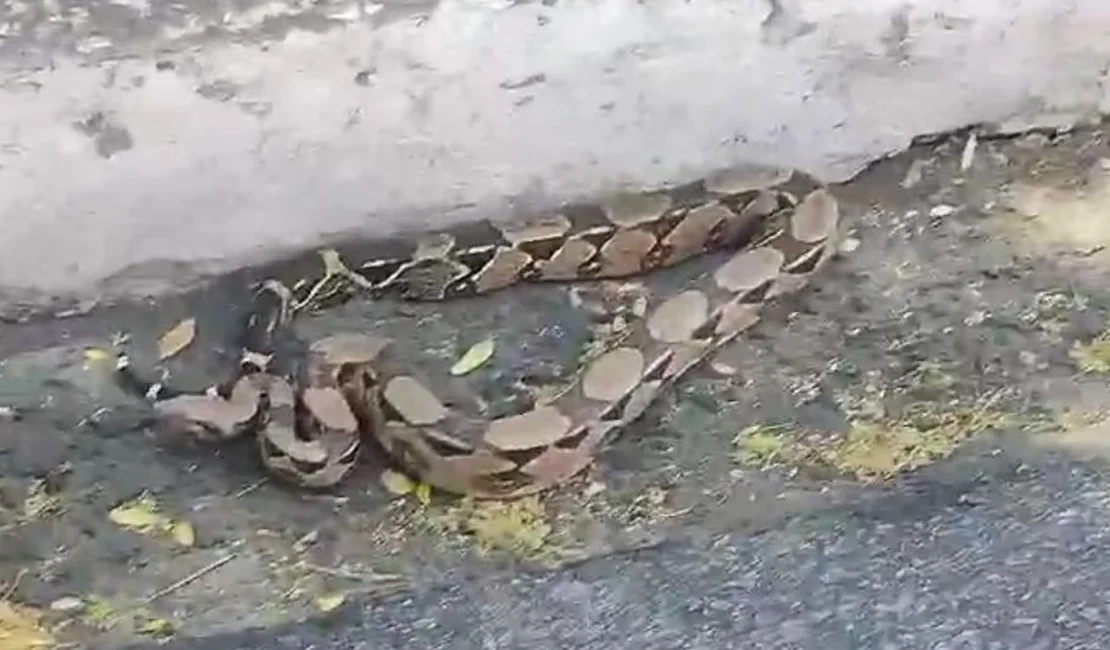 Na manhã desta segunda-feira (11), populares ficaram assustados após uma cobra aparecer perto de um ponto de ônibus na Praça São Vicente, no Centro de Maceió.