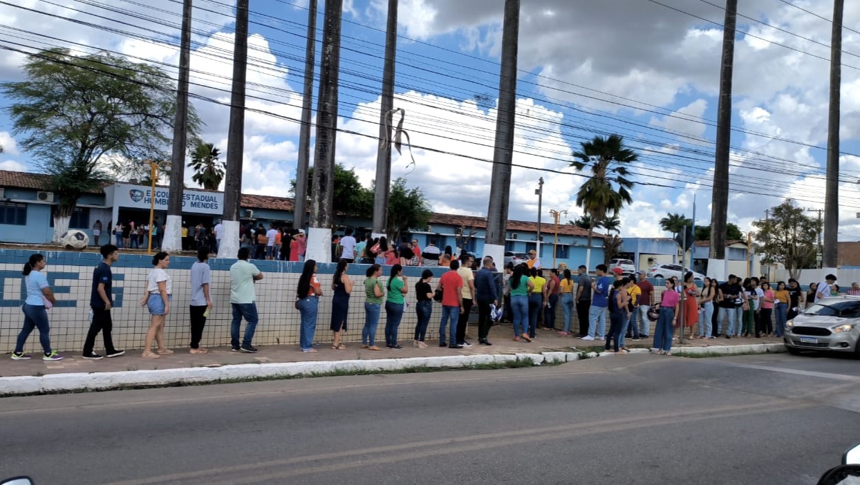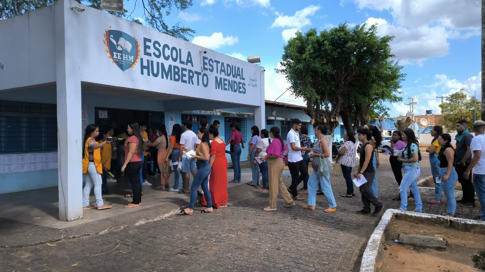 Candidatos aguardando para entrar no Humberto Mendes, para realizar as provas | Foto: Victor Fernando/Portal Rádio Sampaio