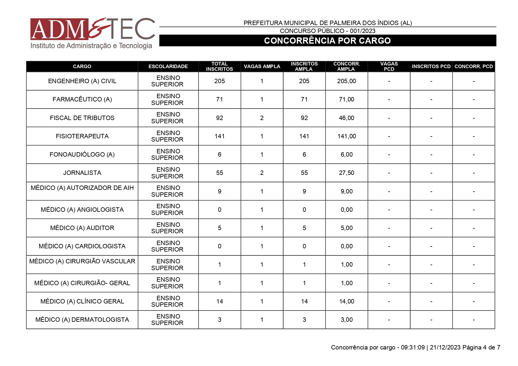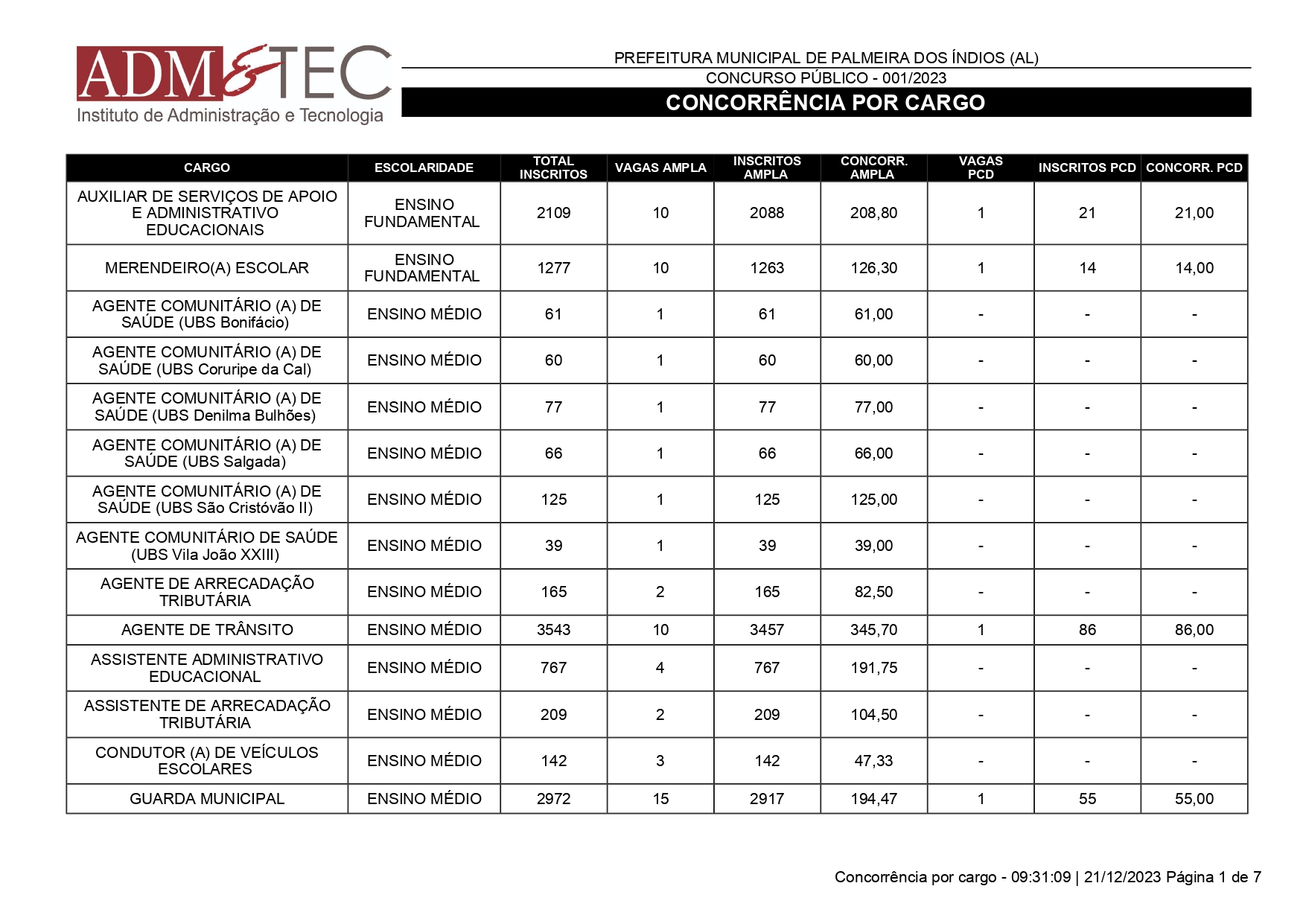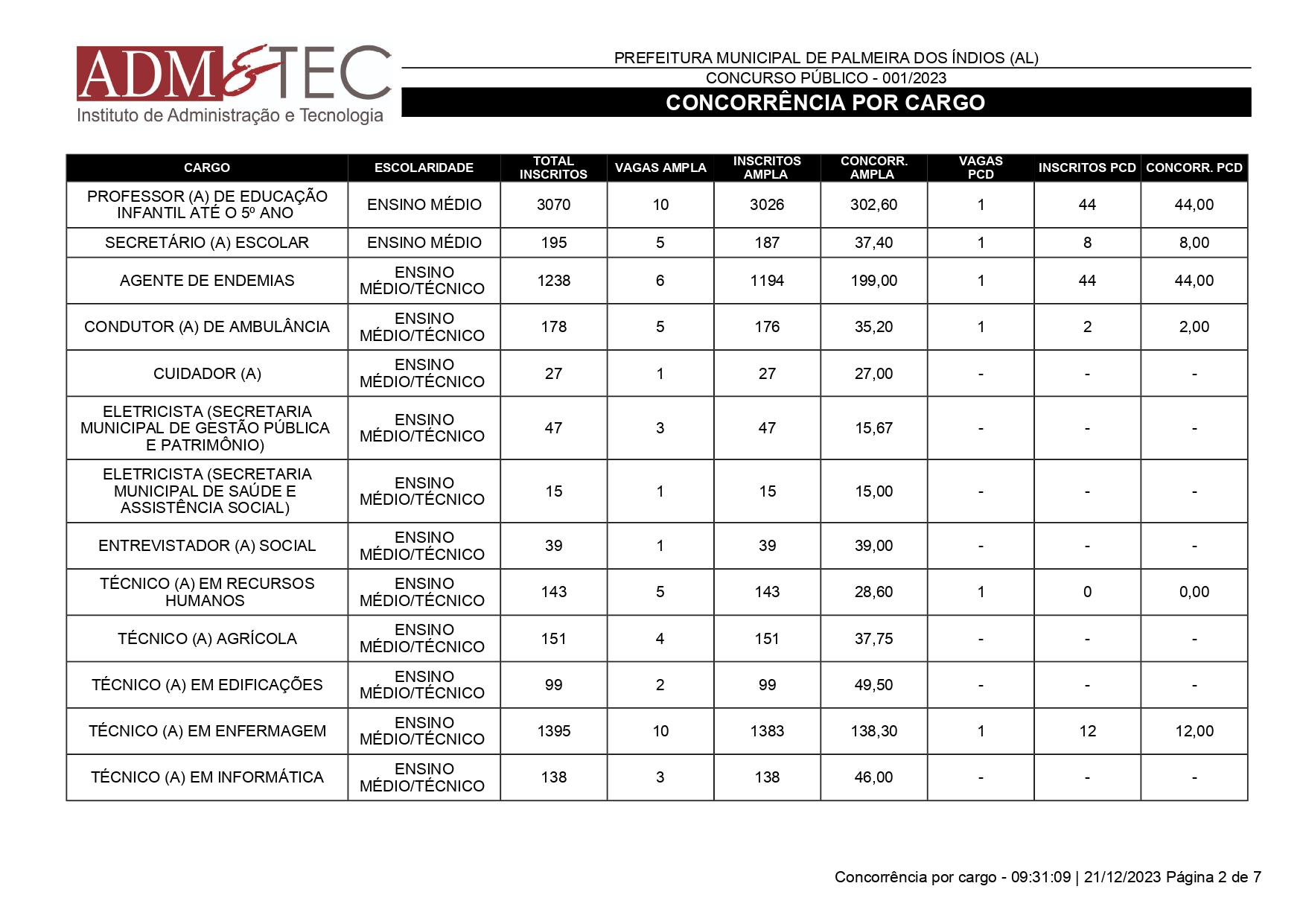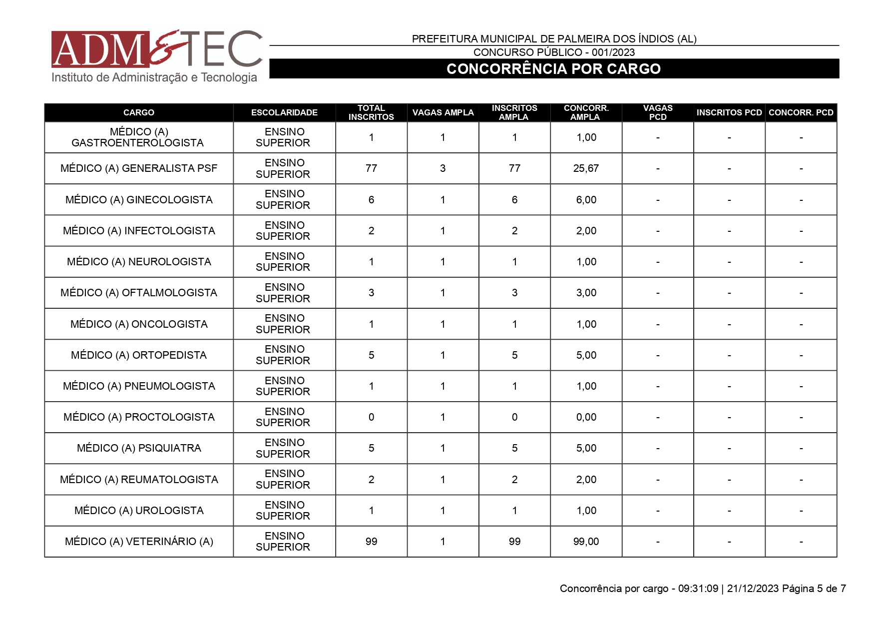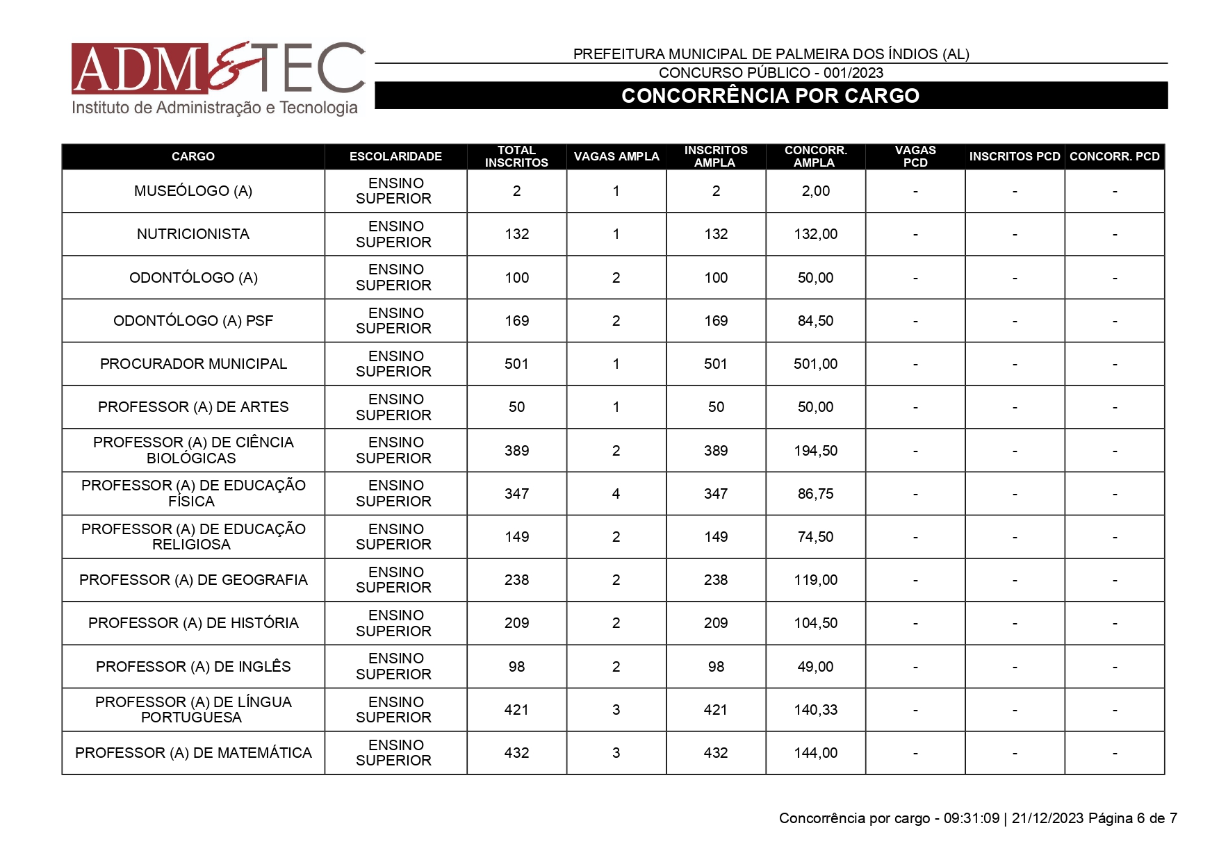 Mais de 25 mil pessoas se inscreveram para o Concurso Público de Palmeira dos Índios que ocorrerá em 14 de janeiro de 2024. A quantidade de inscrições foi divulgada nesta quinta-feira (21) pela ADM&TEC.