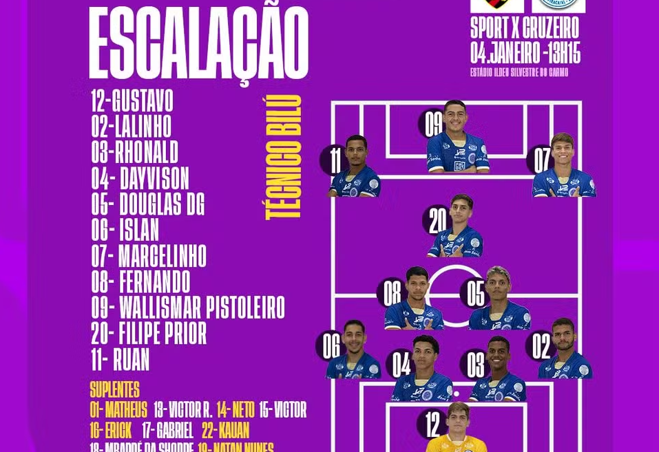 Copinha: Cruzeiro-AL é derrotado pelo Sport por 1 a 0; apelidos de jogadores viralizam nas redes sociais