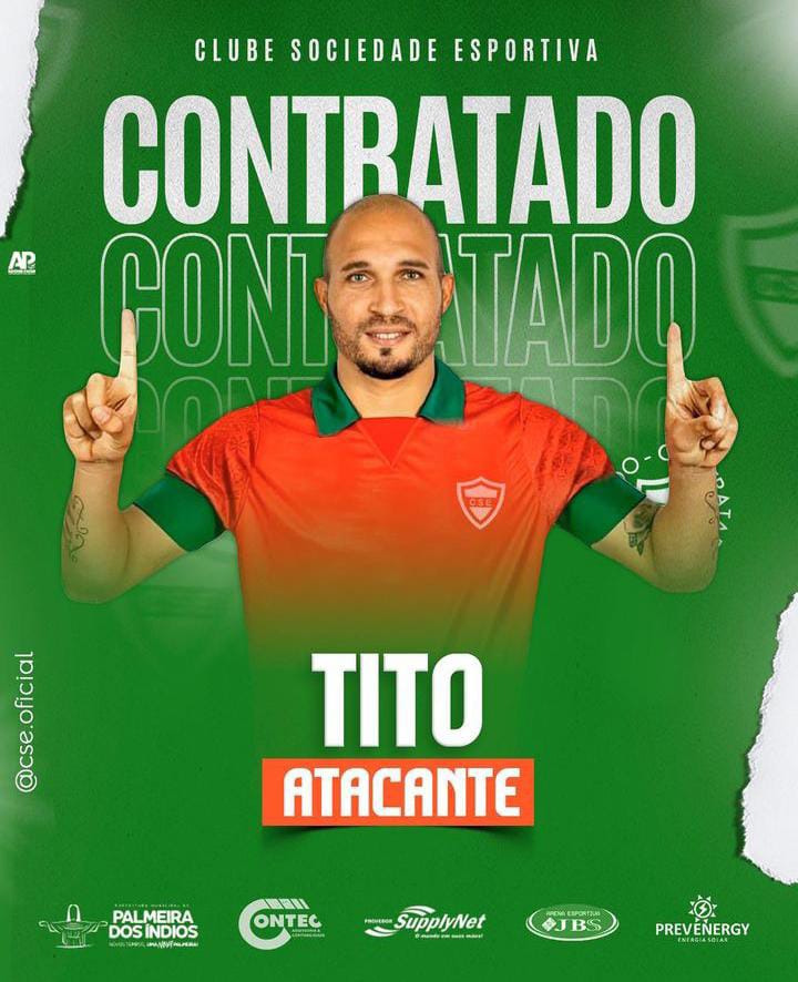 O CSE anunciou nesta sexta-feira a contratação do atacante Tito, que está jogando pelo Araguaia (MT). É o primeiro reforço anunciado oficialmente pelo tricolor palmeirense.