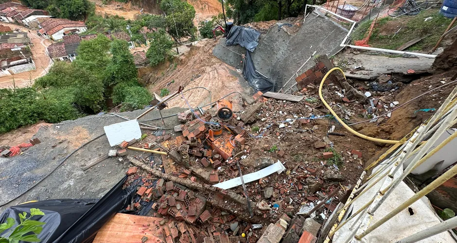 Segundo relatos de moradores, o desmoronamento foi provocado pelo acúmulo de água e resíduos que desceram com força sobre o muro. O cenário se tornou ainda mais crítico com o risco de queda de um gerador, posicionado em uma área instável e que pode desabar a qualquer momento.