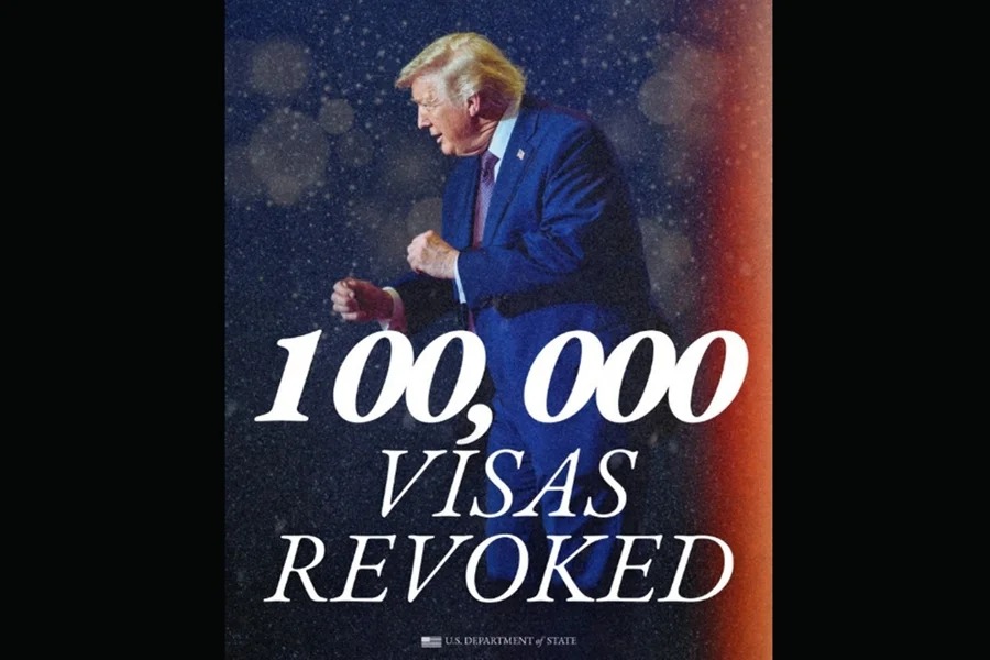 O número é mais que o dobro de 2024, ainda no governo de Joe Biden, com a revogação de 40.000 vistos.“Continuaremos deportando esses criminosos para manter a América segura,” afirmou o órgão.