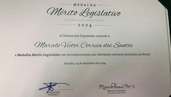 O deputado estadual Marcelo Victor (MDB) recebeu, na manhã desta quarta-feira (4), a Comenda do Mérito Legislativo da Câmara dos Deputados, que é a mais alta das distinções concedidas pela Câmara.