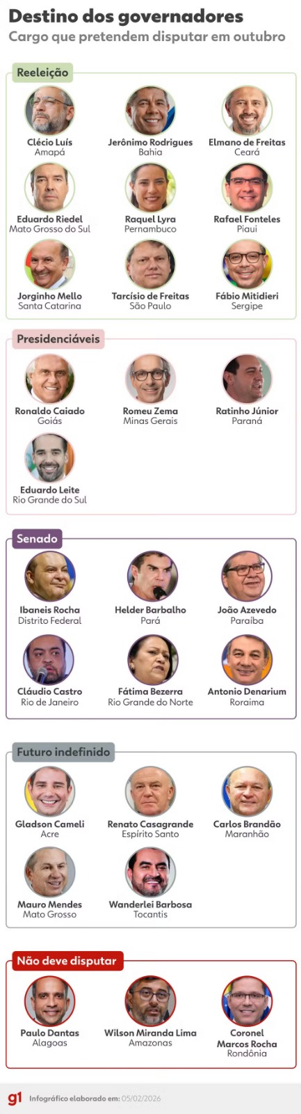 Veja abaixo quais são os governadores que podem e os que não podem tentar a reeleição em 2026.