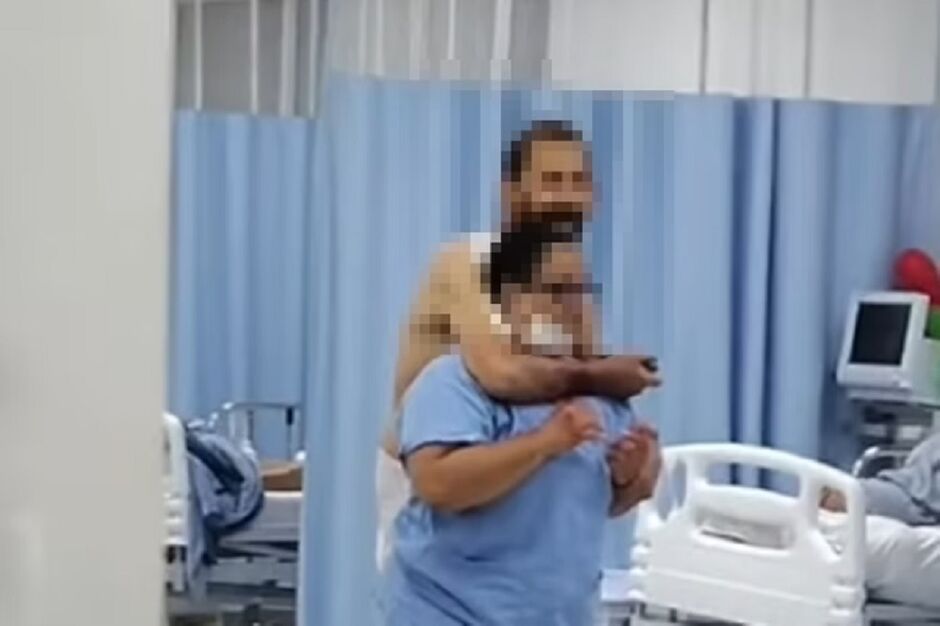 Imagens que circulam nas redes sociais mostram o momento em que o homem mantém a mulher refém. No vídeo, o paciente segura um objeto pontiagudo contra o pescoço da profissional. A cena foi registrada na noite do sábado (18/1), na UTI do hospital.