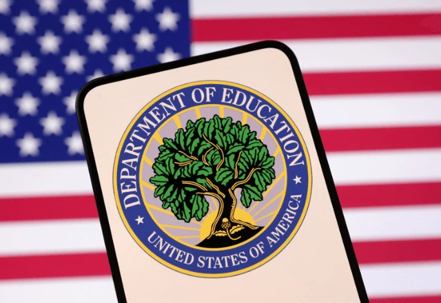 Logotipo do Departamento de Educação e a bandeira dos EUA | Reuters/Dado Ruvic/Foto ilustrativa