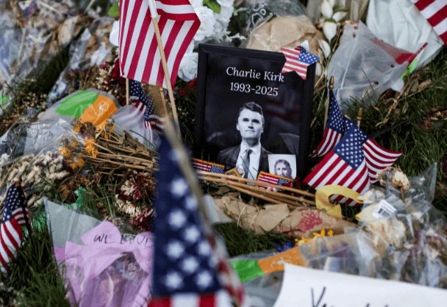 Memorial em homenagem ao ativista de extrema direita Charlie Kirk, baleado e morto em 10 de setembro | Foto: Jim Urquhart/Reuters - 29.09.2025