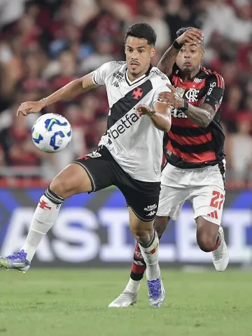 Lucas Oliveira e Bruno Henrique em ação durante jogo entre Flamengo e Vasco no Brasileirão - Imagem: Thiago Ribeiro/AGIF
