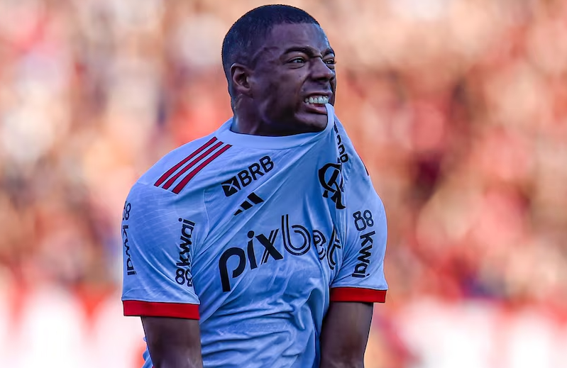 De La Cruz comemora seu primeiro gol pelo Flamengo. Foto: Marcelo Cortes/CRF