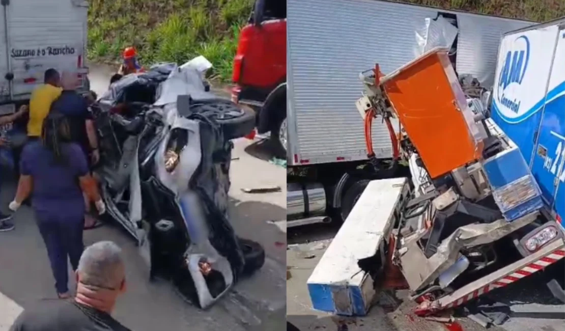 Vídeos gravados por populares mostram a dimensão do acidente. Nas imagens, é possível ver o carro de passeio completamente esmagado e ouvir testemunhas relatando que há mortos no local. Circulam, ainda, suspeitas de que crianças estariam entre as vítimas, mas essa informação não foi confirmada pelas autoridades até o momento.
