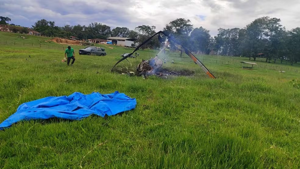 Não há informações sobre o que causou o acidente, mas funcionários da fazenda disseram à Polícia Militar que ouviram um barulho antes da queda do helicóptero, que era adaptado para pulverização de lavouras.