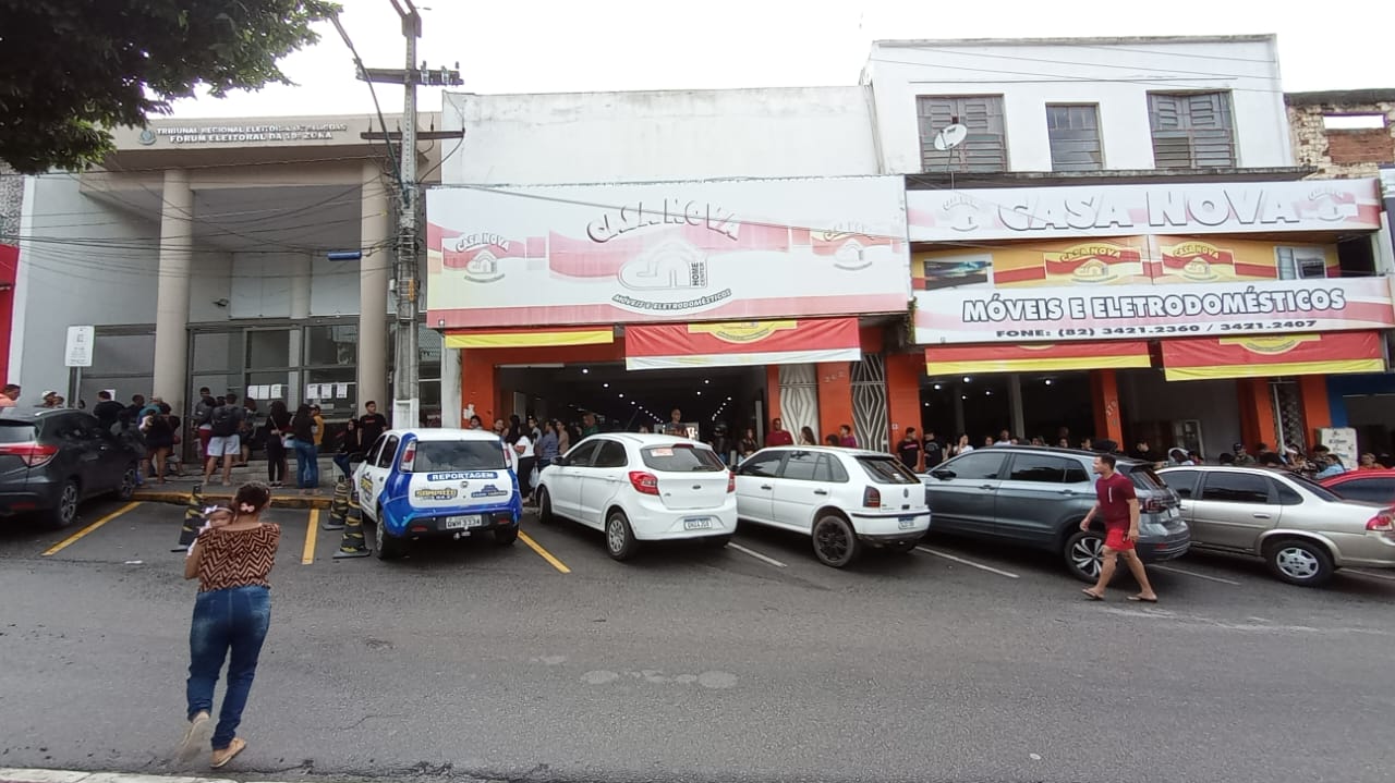 Uma grande fila se formou na frente do Cartório Eleitoral, em Palmeira dos Índios, na manhã desta quarta-feira (7) - Foto: Gustavo Morais