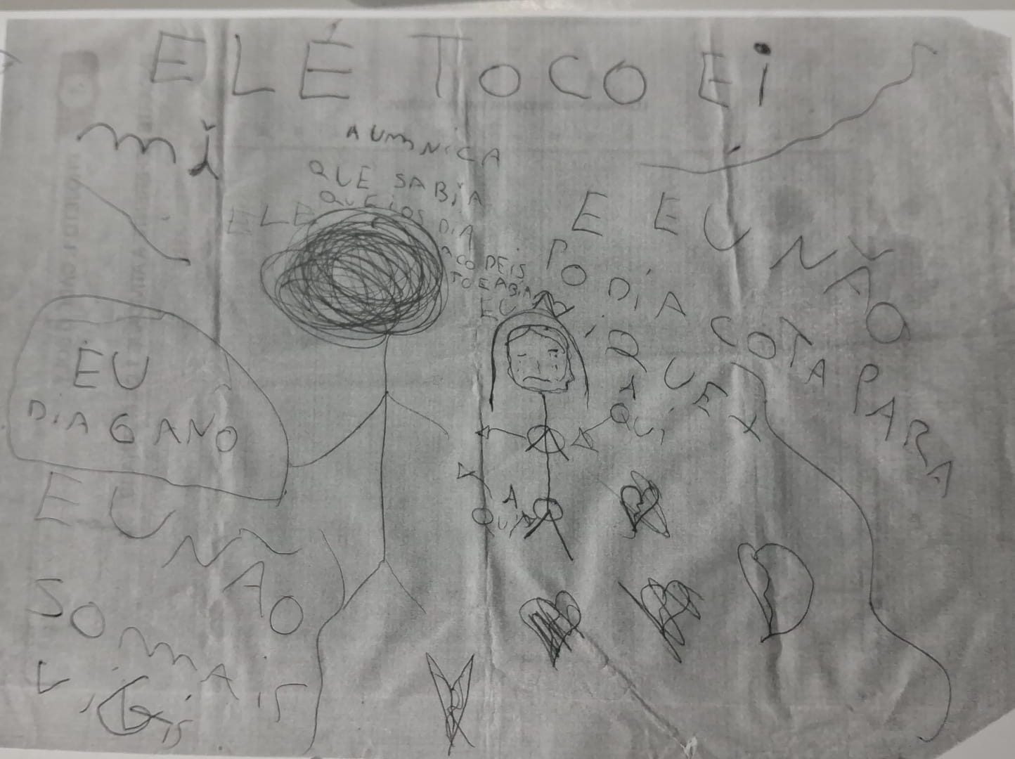 Quando isolada, a vítima fez desenhos e rascunhos expressando suas angústias e informando que o autor do crime tinha lhe tocado e que ela não era mais virgem. Os desenhos foram encontrados pela irmã da menor, que os mostrou à mãe. Com isso, a família passou a ter conhecimento dos abusos.