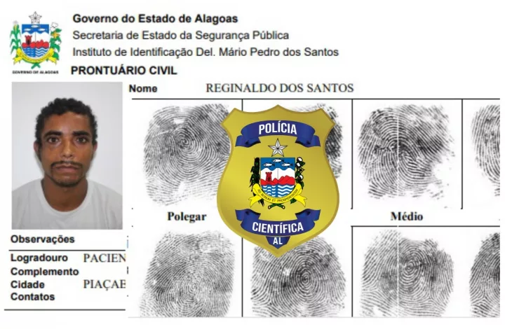 Reginaldo morava em Piaçabuçu, na Rua Coronel Fernando Teodomiro, no bairro Paciência. Conforme foi verificado no registro de prontuário do arquivo civil do Instituto de Identificação, a mãe do homem se chama Cícera Maria dos Santos. A vítima é mulata, tem olhos e cabelos pretos e possui o dedo mindinho direito amputado.