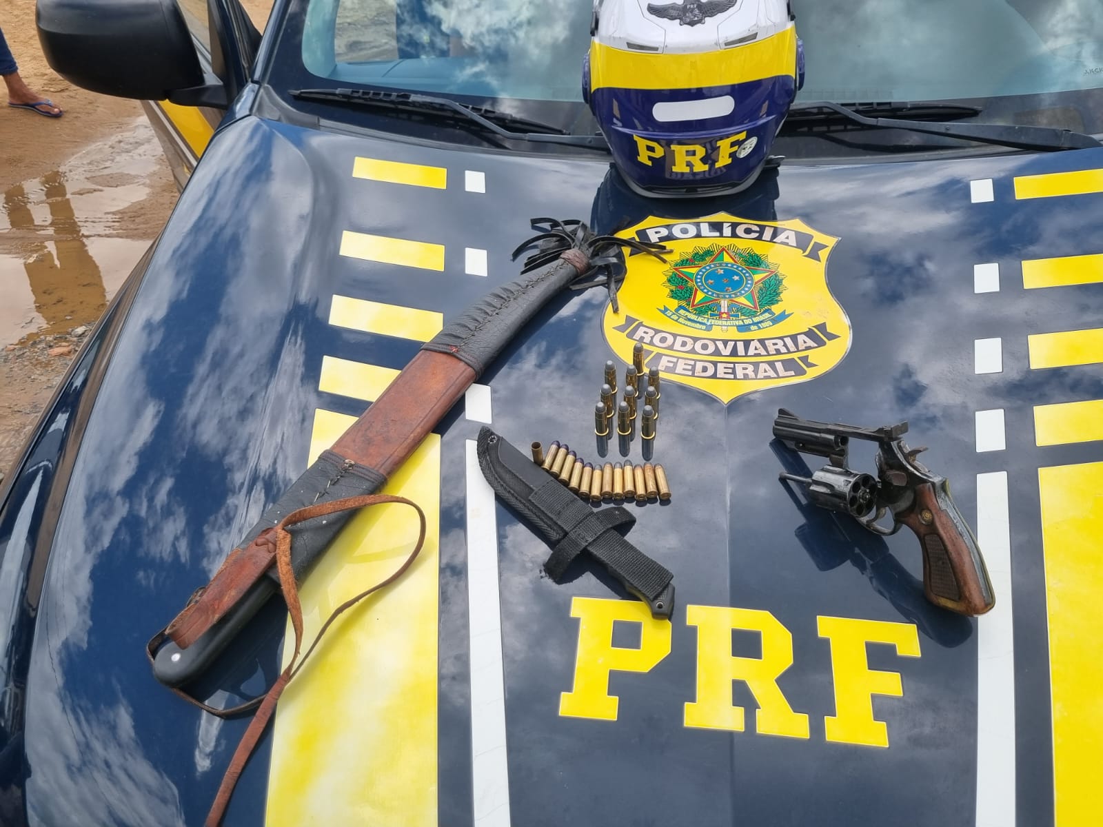 A Polícia Rodoviária Federal prendeu, nesta terça-feira (18), um homem por porte ilegal de arma de fogo, no município de Murici/AL.