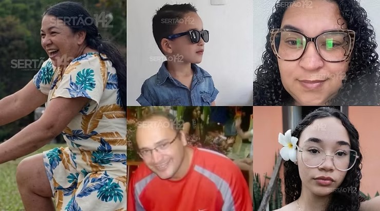 Morreram no local Cinthia Cavalcante, de 40 anos, o marido dela, José Ribamar Rodrigues dos Santos, de 50 anos, os três filhos do casal — João Murilo Cavalcante, de 3 anos, Isaac Valentim Cavalcante, de 10 anos, e Júlia Raquieli Cavalcante dos Santos, de 15 anos —, além de Solange Pereira Cavalcante, de 60 anos, mãe de Cinthia e avó das crianças.