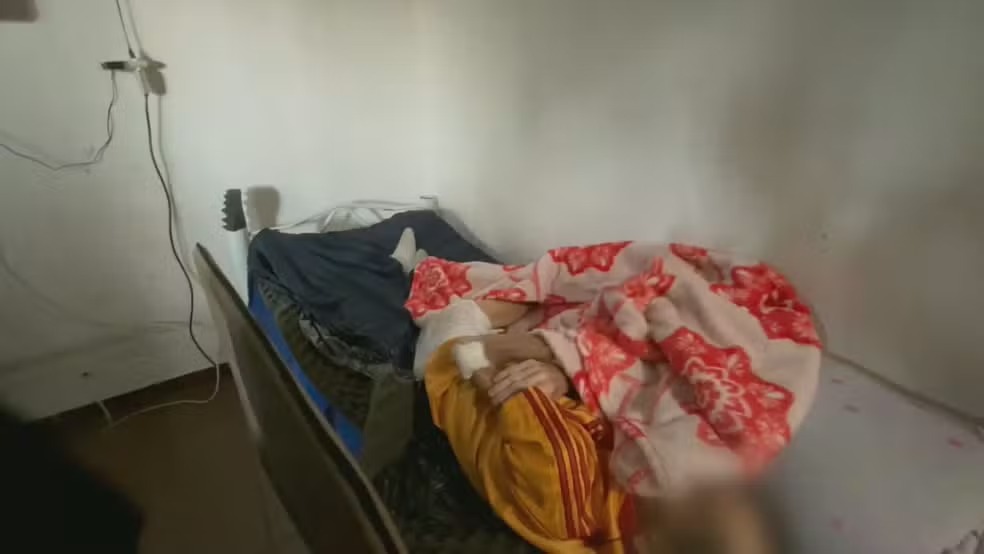 Idosa é resgatada em estado de desnutrição grave durante operação em abrigo clandestino de Santa Cruz — Foto: Reprodução/TV Globo