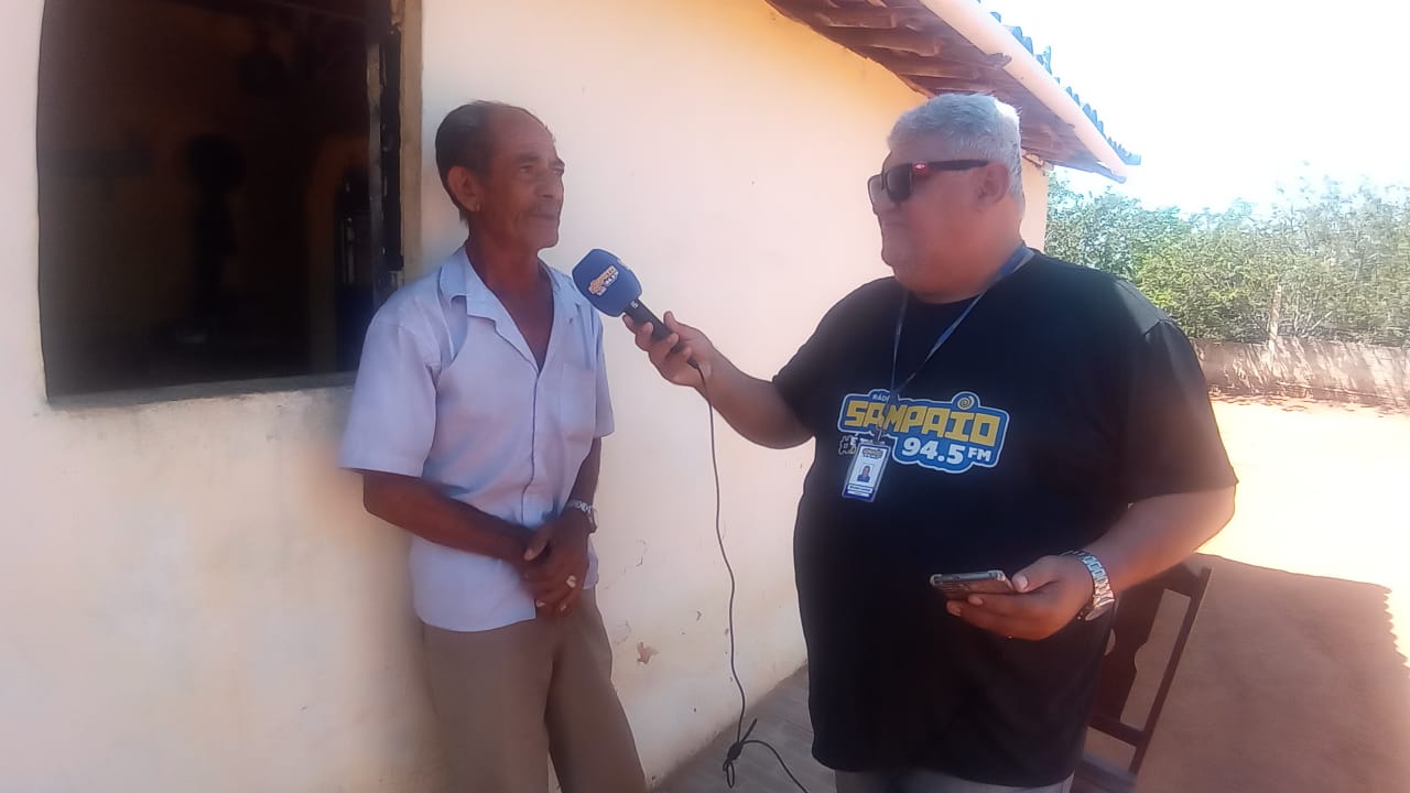 Repórter Niraldo Correia entrevistando o sr. Jaime Rodrigues | Foto: Márcio Lima