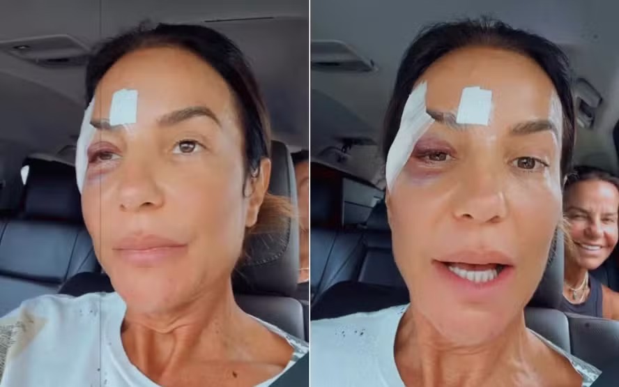 Nos Stories de seu perfil no Instagram, Ivete publicou um vídeo no carro ao lado da irmã, Cynthia Sangalo, e exibiu os curativos no rosto. "Gente, eu estou ótima. Estou maravilhosa", afirmou ela.