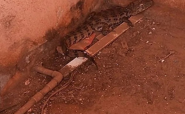 Um Jacaré foi resgatado pelo Corpo de Bombeiros Militar (CBM) após invadir uma residência na tarde desta sexta-feira (5), na Rua Dom Otávio Aguiar, bairro Ribeira em Palmeira dos Índios.