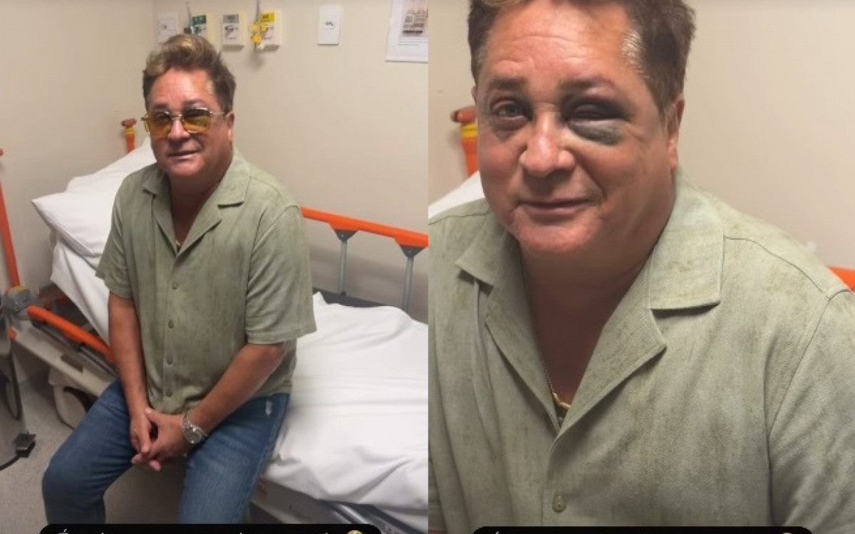 Leonardo apareceu com o olho roxo em vídeos publicados pela mulher, Poliana Rocha, nesta sexta-feira (24). O hematoma no rosto do sertanejo foi causado durante pescaria e ele deu entrada em um hospital de Goiânia para realizar exames.