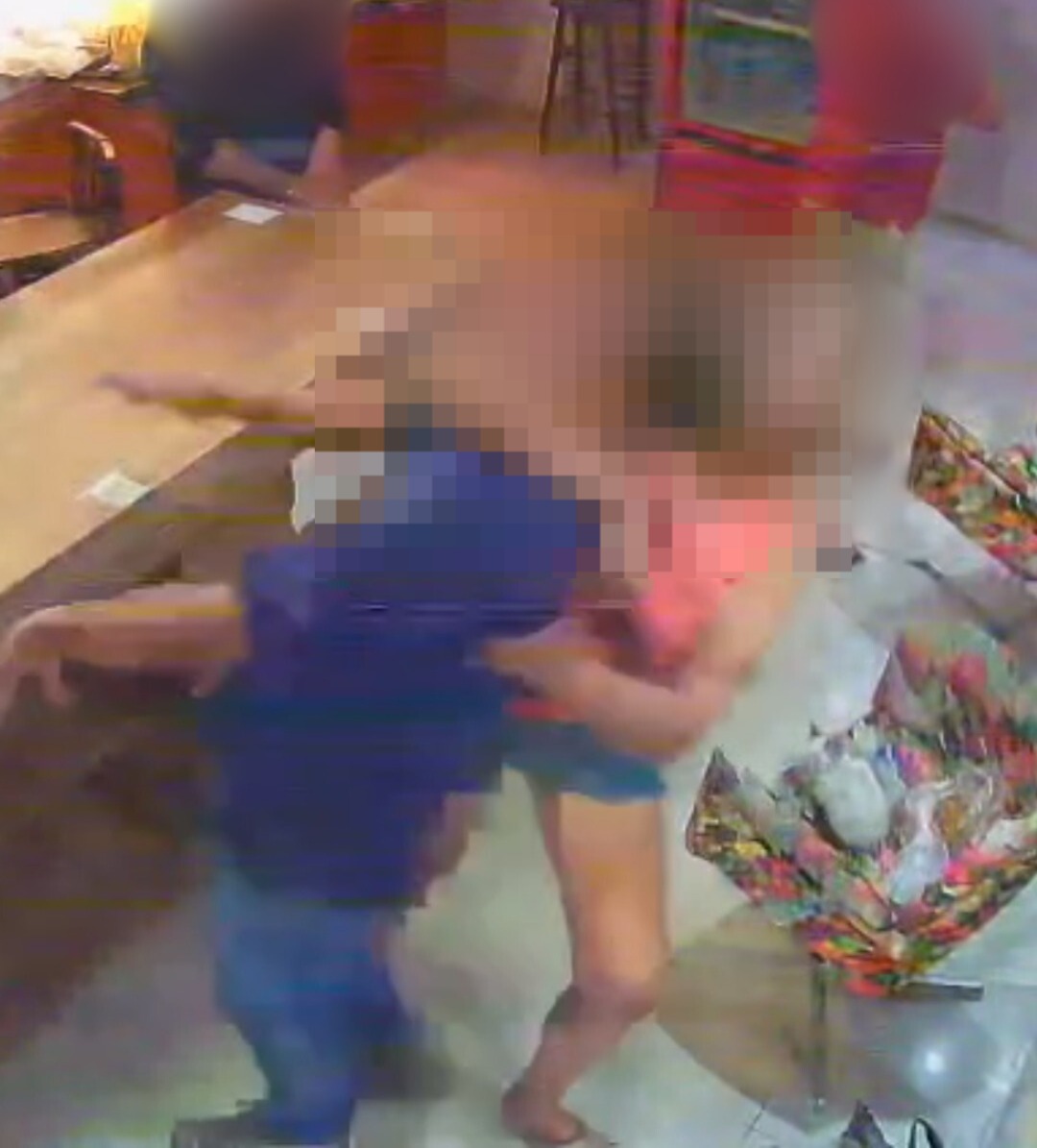 Um hóspede foi agredido fisicamente por ela, apresentando hematomas e manchas de sangue.