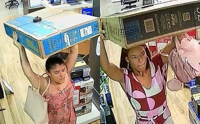 Em imagens divulgadas pela polícia, é possível ver que as quatro mulheres passeiam juntas pelo shopping, mas apenas duas aparecem furtando os televisores. Elas chegam a levantar as TVs na hora de passar pela porta para não ativar o sistema de segurança da loja.
