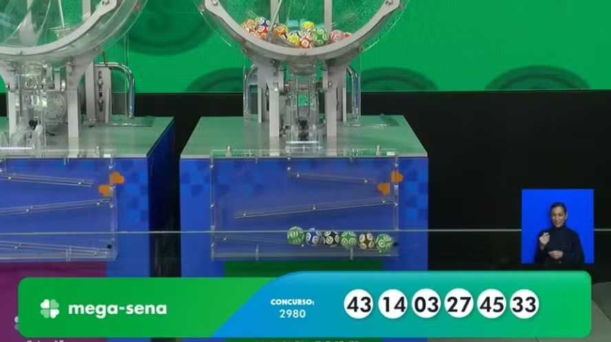 A Caixa Econômica Federal realizou nesta quinta-feira o sorteio do concurso 2.980 da Mega-Sena, com um prêmio de R$ 41.937.385,41.
