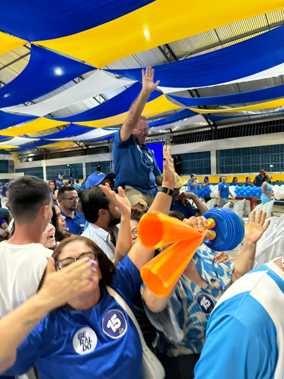 Finalmente, Geraldo deixou o ginásio nos braços do povo, num dos muitos momentos marcantes que confirmaram a sintonia entre o candidato e seus apoiadores, que entoavam brados de vitória.
