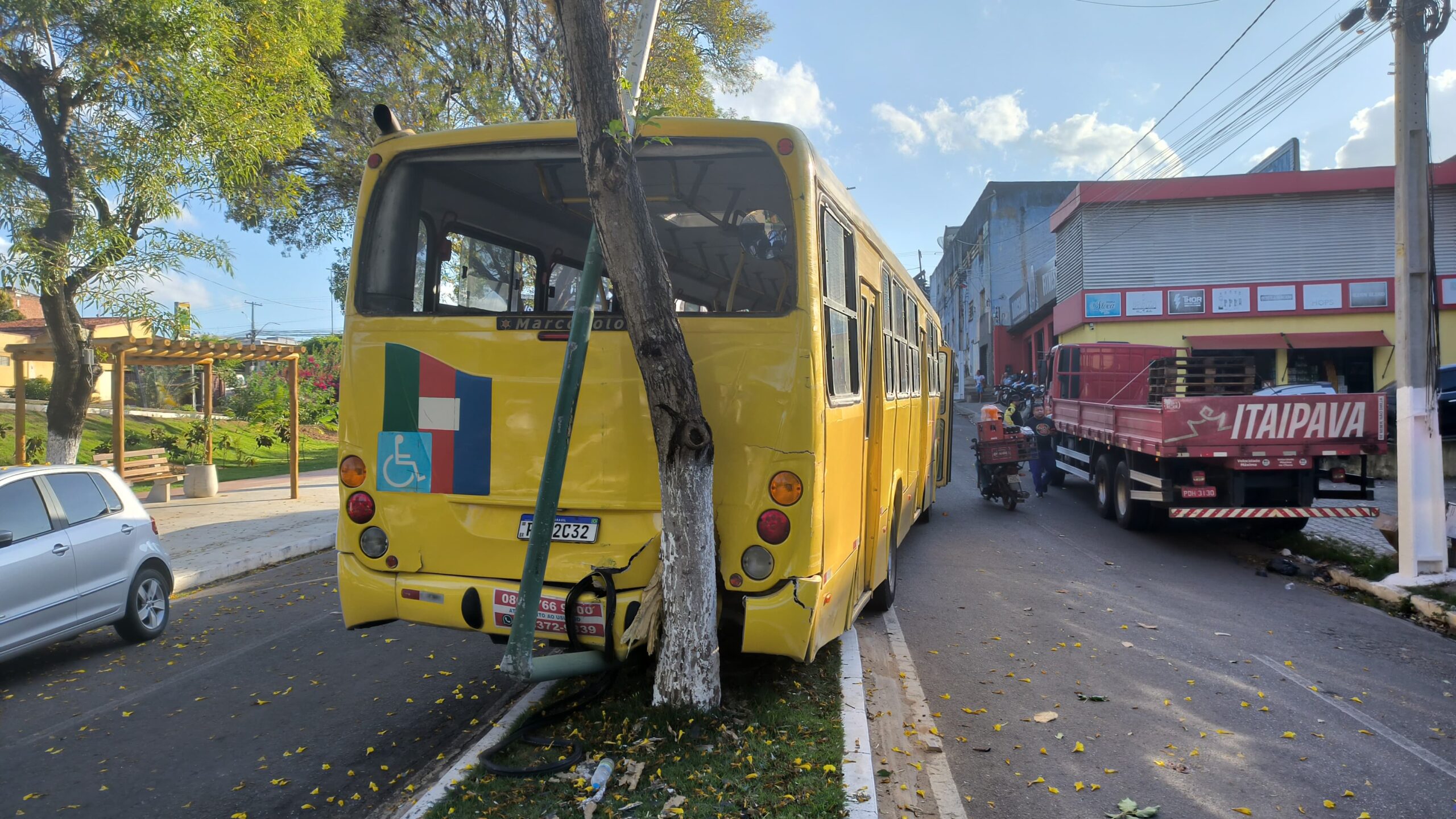O ônibus só parou quando colidiu com uma árvore - Foto: Victor Fernando