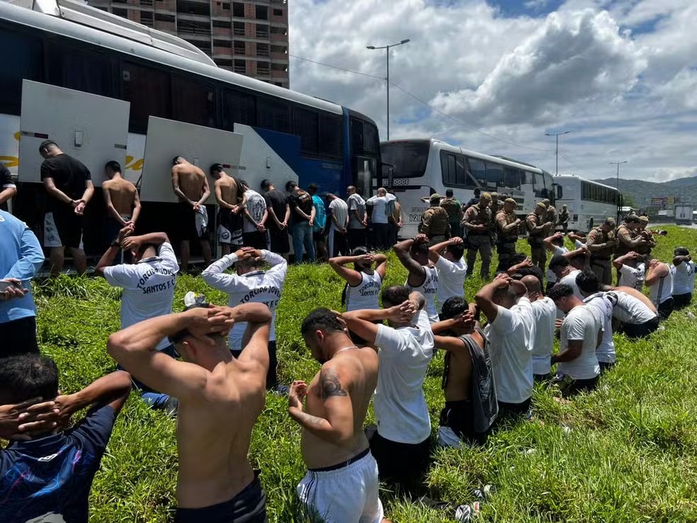 Segundo a Polícia Rodoviária Federal (PRF), cerca de 200 integrantes de uma organizada do Santos, divididos em sete ônibus, planejaram uma emboscada ao diminuir intencionalmente a velocidade dos ônibus na rodovia para interceptar os colorados.