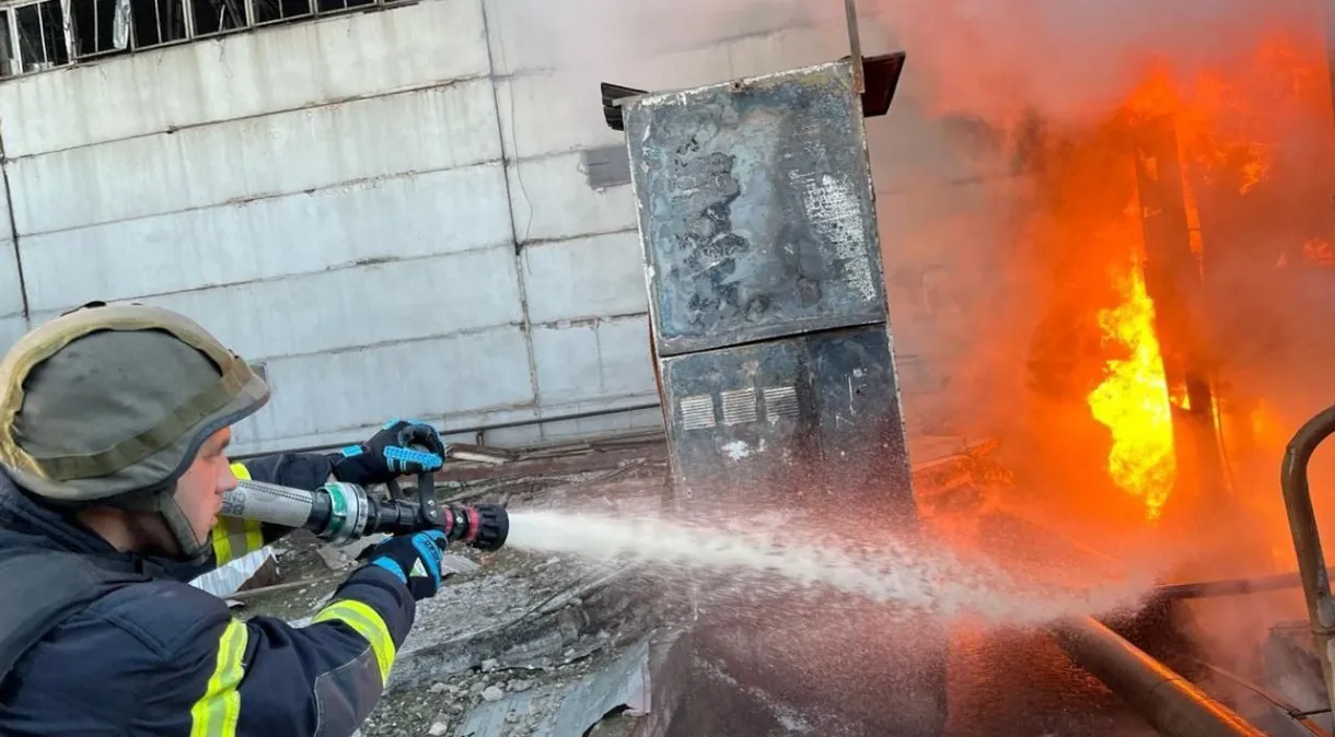 Bombeiro apagando fogo após ataque russo | Foto: divulgação/Reuters