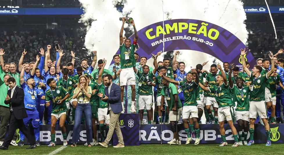O Palmeiras venceu o Cruzeiro por 3 a 0, nesta segunda-feira (30), no Allianz Parque, e conquistou o título de campeão do Brasileirão Sub-20 de 2024. Sob os olhares de Abel Ferreira e 23 mil torcedores, o Alviverde conquistou o seu terceiro Brasileiro na categoria com gols de Allan e Coutinho ( duas vezes).
