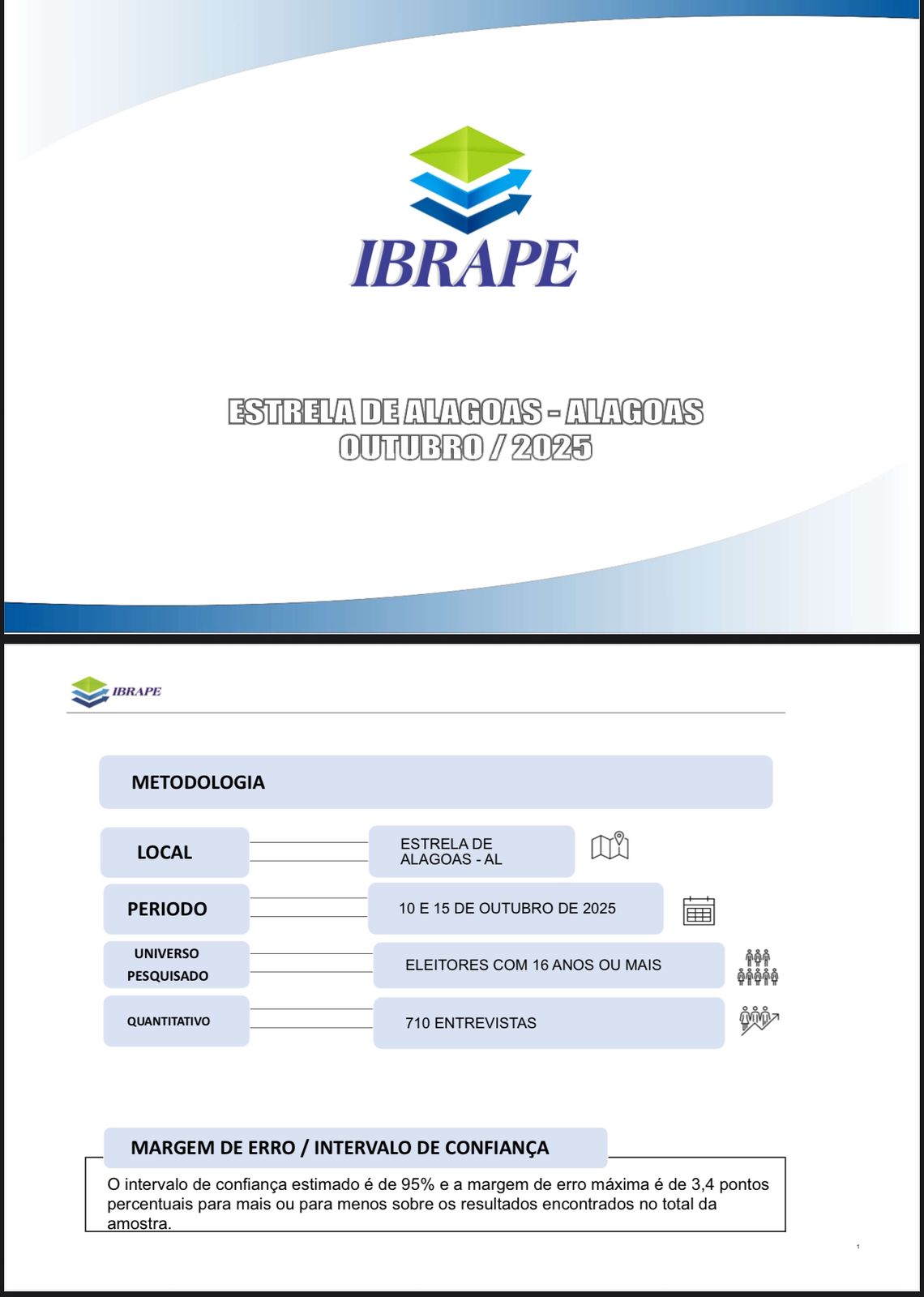Uma pesquisa do Instituto Ibrape, realizada entre os dias 10 e 15 de outubro de 2025, com 710 entrevistados em Estrela de Alagoas, mostra que a administração do prefeito Roberto Wanderley (MDB) alcança altos índices de aprovação popular e é vista como símbolo de transformação na forma de governar o município.