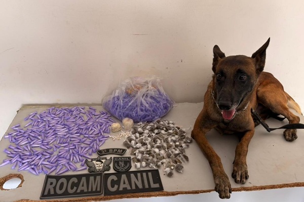 As drogas estavam em uma sacola plástica abandonada por um suspeito que tentava fugir de uma abordagem de equipes do Canil do 3º Batalhão. Os militares foram ao endereço averiguar informações sobre a localização de um indivíduo suspeito de participação em homicídios na cidade.
